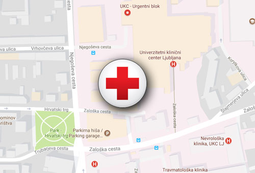 City center: on the left side of Dunajska Street (looking in the direction of Bežigrad district) via Prešernova Street, turn left onto Šubičeva Street, turn right onto Bleiweisova Street, continue onto Tivolska Street and onto OF Square, continue on Masarykova Street, then turn right onto Njegoševa Street OR via Gosposvetska Street, turn right onto Tivolska Street and onto OF Square, continue on Masarykova Street, then turn right onto Njegoševa Street.