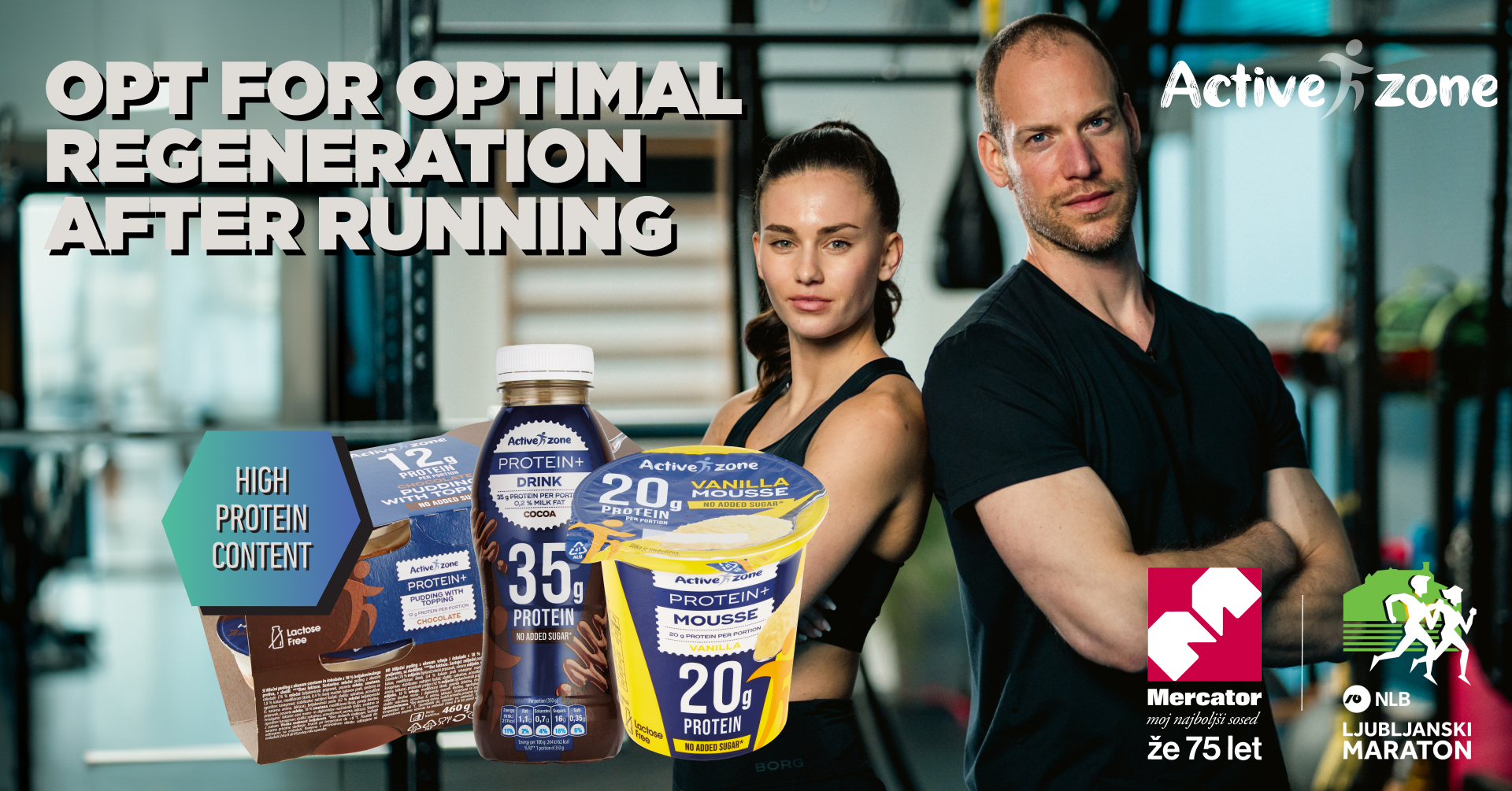 The NLB Ljubljana Marathon is just around the corner, and it's not just fast feet that are important for good running form. Strength and rapid regeneration are also important. Join the 30-day Active Zone Challenge on msoseska.tv and ensure optimal fitness with Active Zone products. Choose products with a high content of dietary fiber, and above all extremely important proteins: skyr, protein shakes and puddings, 100% peanut butter, as well as new protein lactose free puddings with cream and mousse or bread.