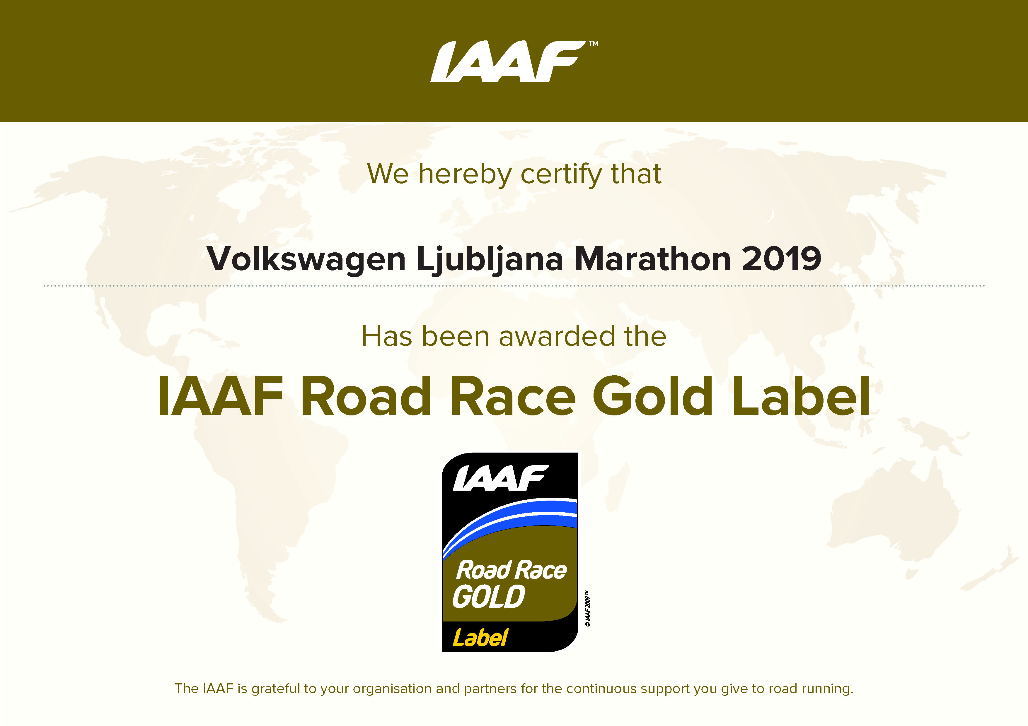 The Volkswagen Ljubljana Marathon received a new confirmation, a new award.