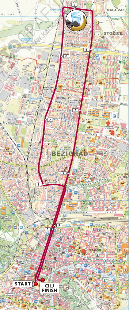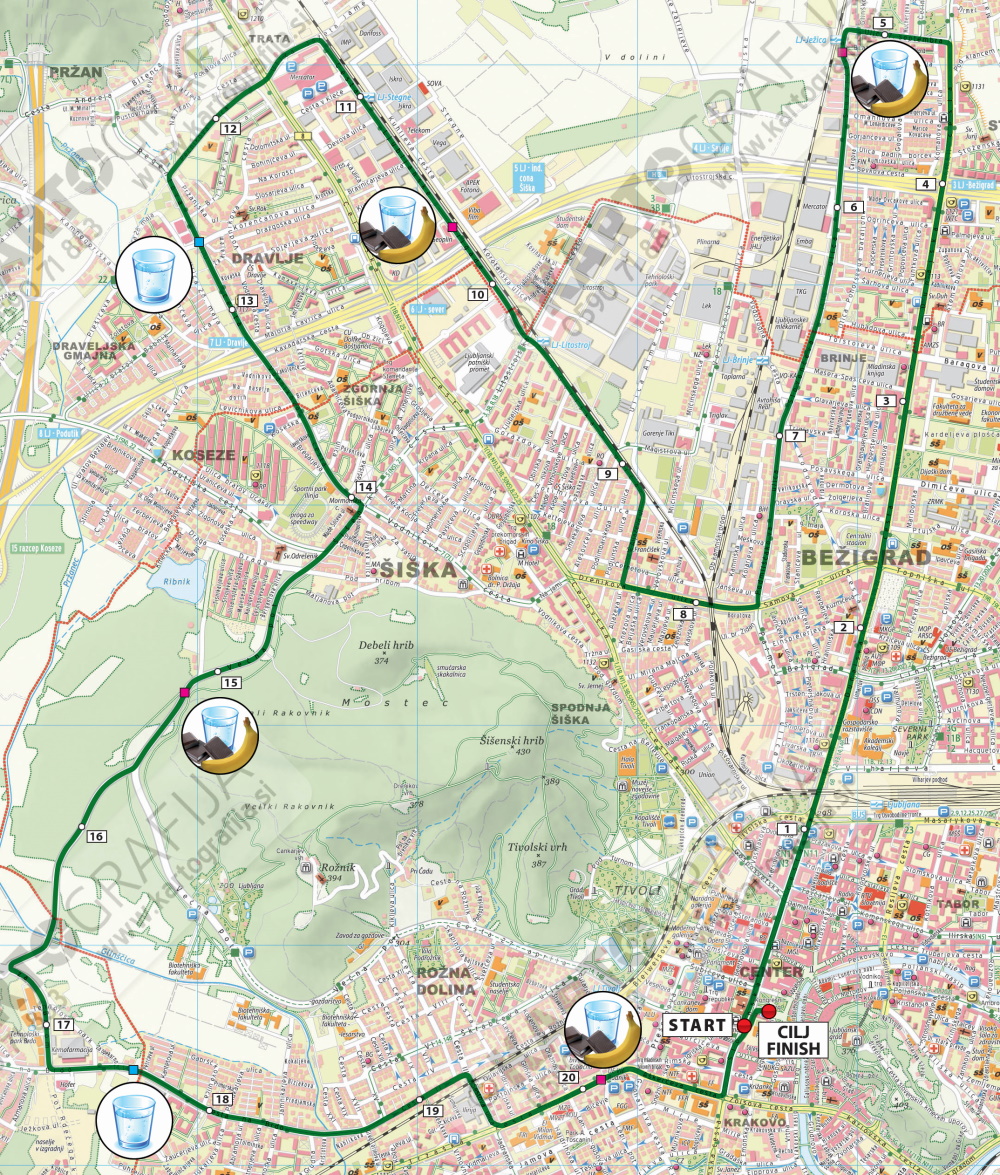 - OK 2 (10,0 km) - refreshment station Cesta ljubljanskih brigad, for 21, 42 km