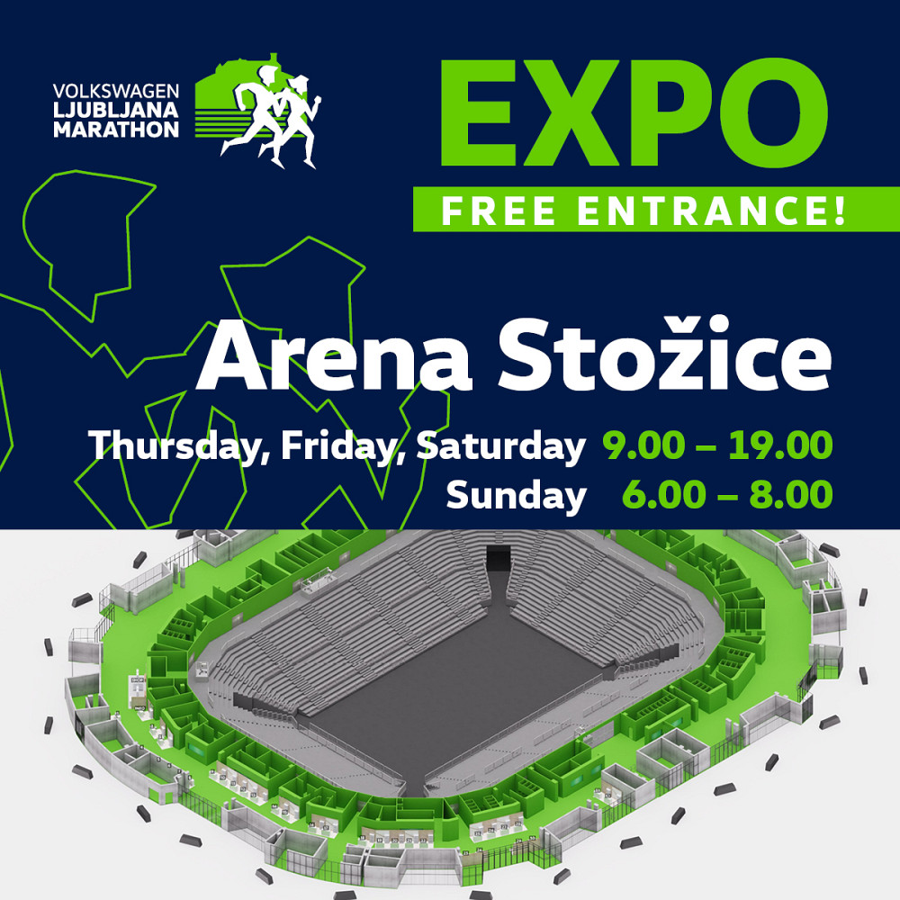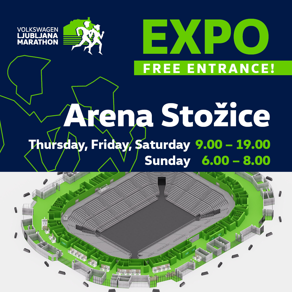 The VW Ljubljana Marathon Expo will be held at the Stožice Arena sports hall. This will be our first live point of contact, as you will need to collect your bib number and backpack in person.