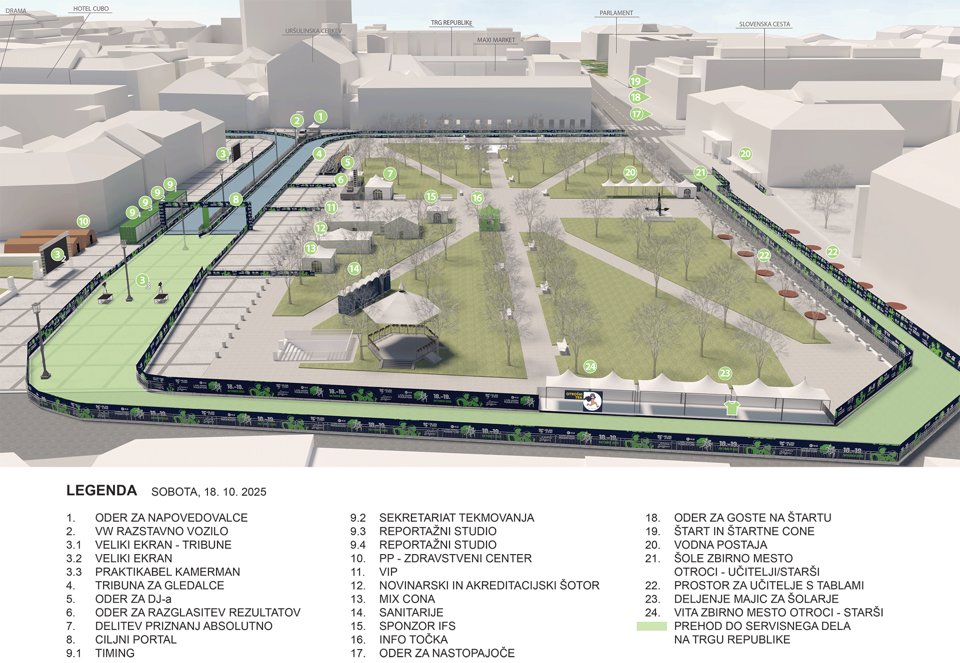 Da se boste na dan dogodka lažje znašli, smo pripravili skico prireditvenega prostora Kongresnem trgu, Trgu republike in Slovenski cesti