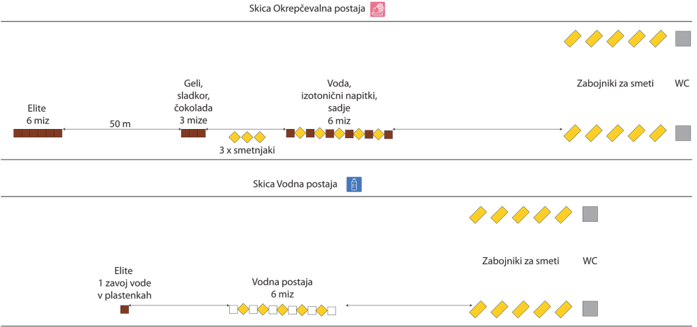 Na vseh okrepčevalnih in vodnih postajah, bodo na voljo tudi kemični WC-ji.