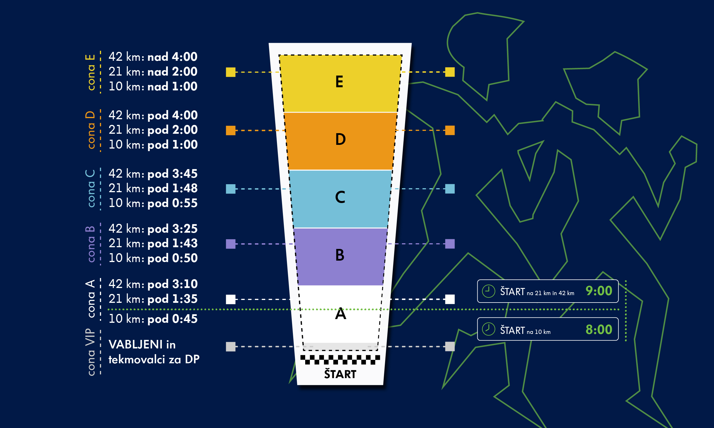 Oznaka cone je s črko zapisana na startni številki!