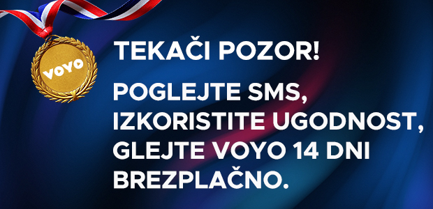 *Po preteku brezplačnega obdobja se prične obračunavati mesečna naročnina, v skladu s splošnimi pogoji in cenikom, objavljenimi na www.voyo.si. Naročnino lahko prekinete kadarkoli, brez stroškov vezave, na www.voyo.si/nastavitve.