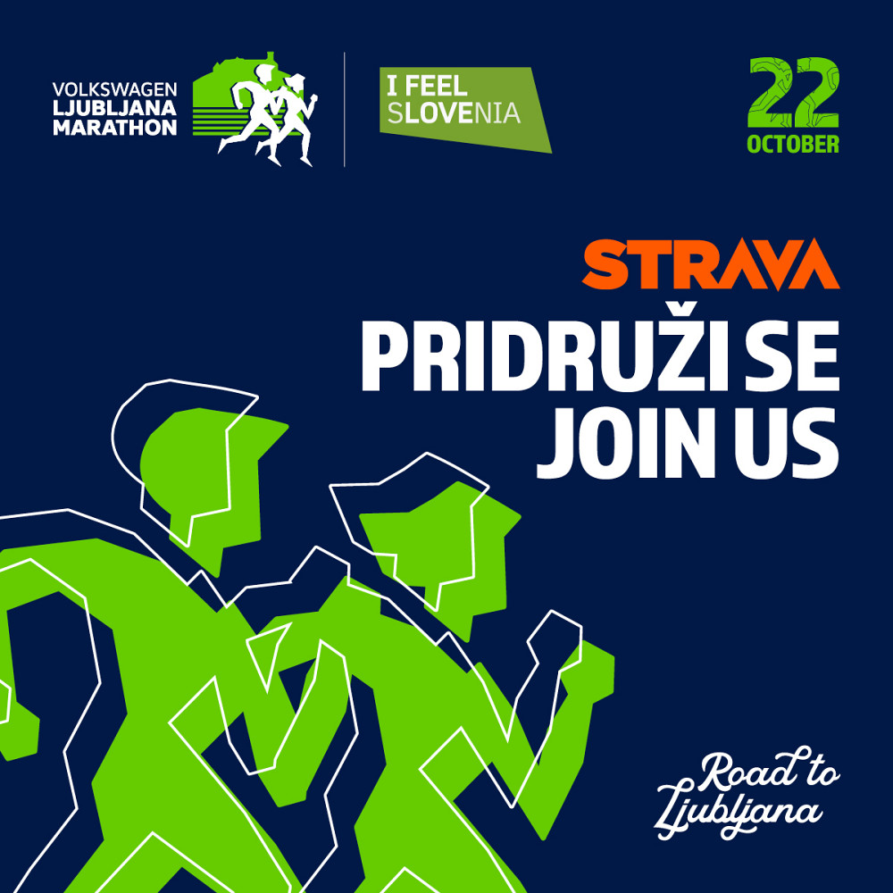 Strava združuje isto misleče, pripadnike istih nazorov v skupinah, kjer je družabni in tekmovalni motiv še poglobljen. Zato vas povabimo, da se nam pridružite v skupnost tekačev »Ljubljana marathon« na Stravi. Tukaj bomo dihali kot eno, pregledovali in primerjali aktivnosti, spoznavali nove tekače, odkrivali nove informacije in kdaj tudi sodelovali v različnih izzivih. Iz Google Play trgovine ali trgovine APP store si prenesite aplikacijo Strava in se pridružite klubu »Ljubljana marathon«. Obiščete nas lahko tudi na spletni različici na www.strava.com.