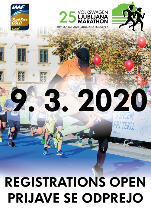 Sporočamo vam, da se PRIJAVE na Volkswagen 25. Ljubljanski maraton ODPREJO v ponedeljek, 9. 3. 2020.