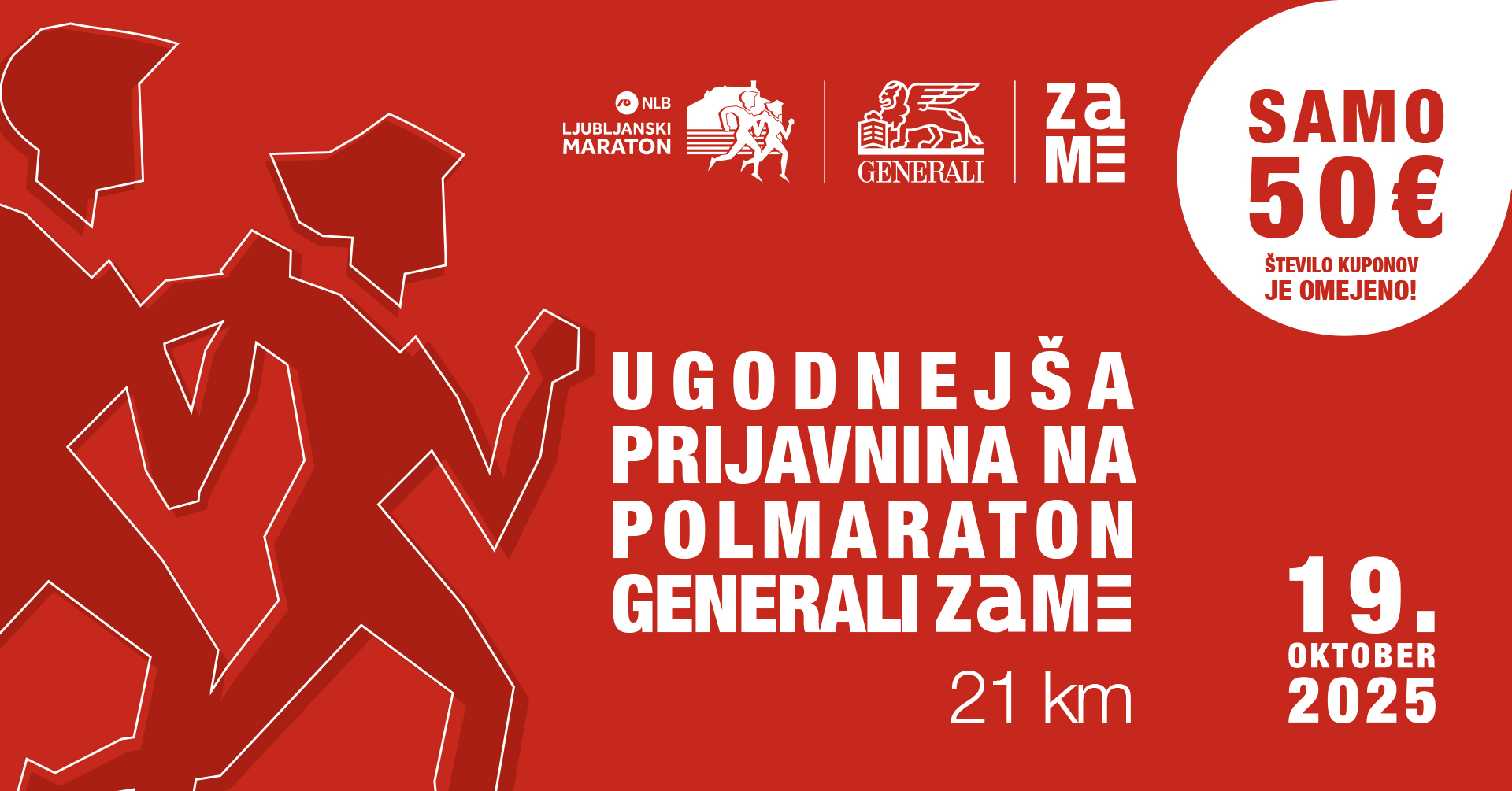 S članstvom v Programu prednosti Generali ZAME tudi letos do ugodnejše prijavnine na polmaraton Generali ZAME. Do konca aprila si lahko člani zagotovite prijavnino na polmaraton Generali ZAME za samo 50 EUR. Nikar ne odlašajte predolgo, saj je število kuponov omejeno, prijava pa najboljša motivacija za priprave.