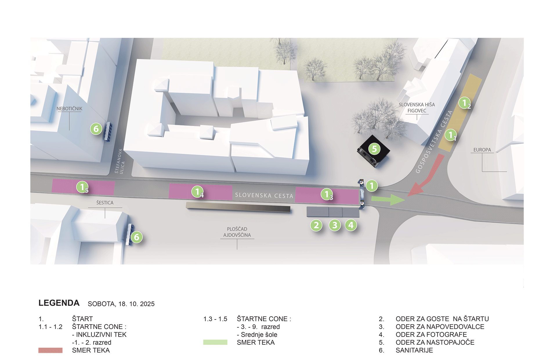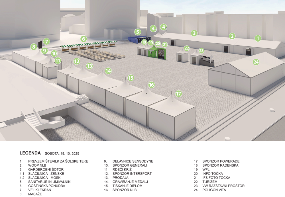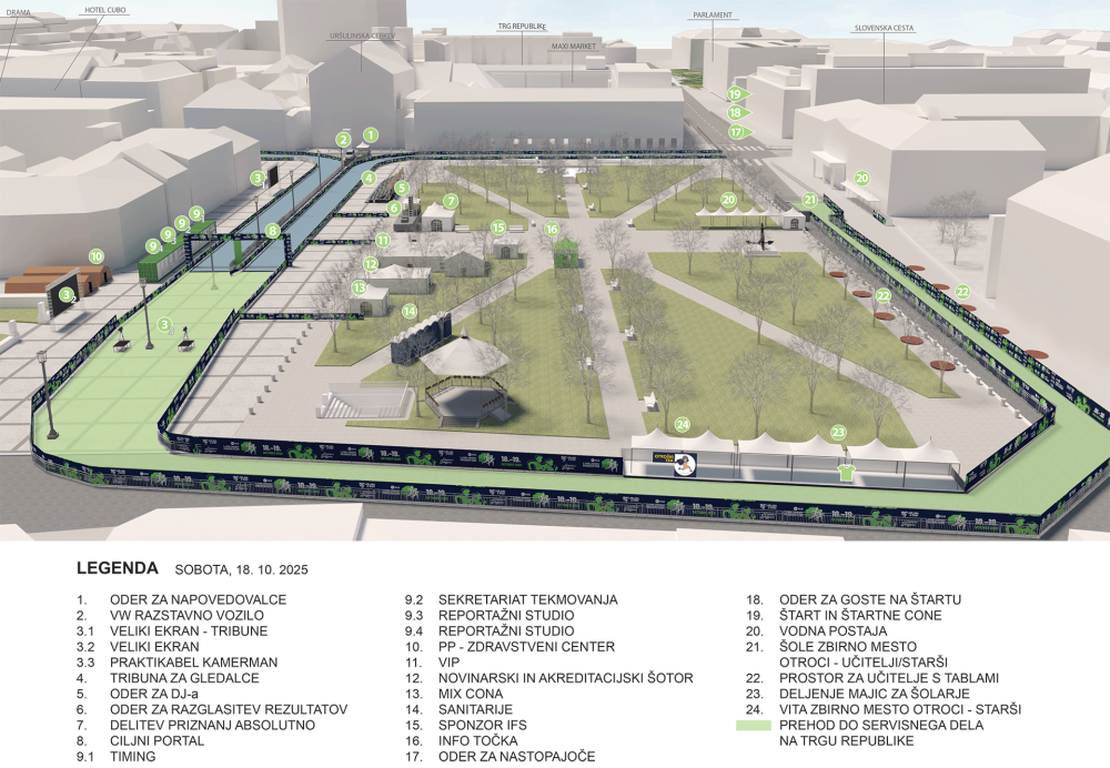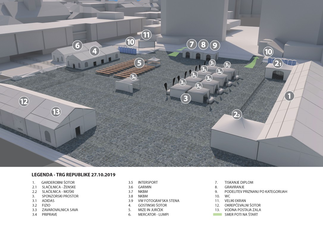 Da se boste na dan maratona lažje znašli, objavljamo letošnjo postavitev spremljevalnih objektov (prireditveni prostor) na Kongresnem trgu in Trgu republike 1, Trgu republike 2.