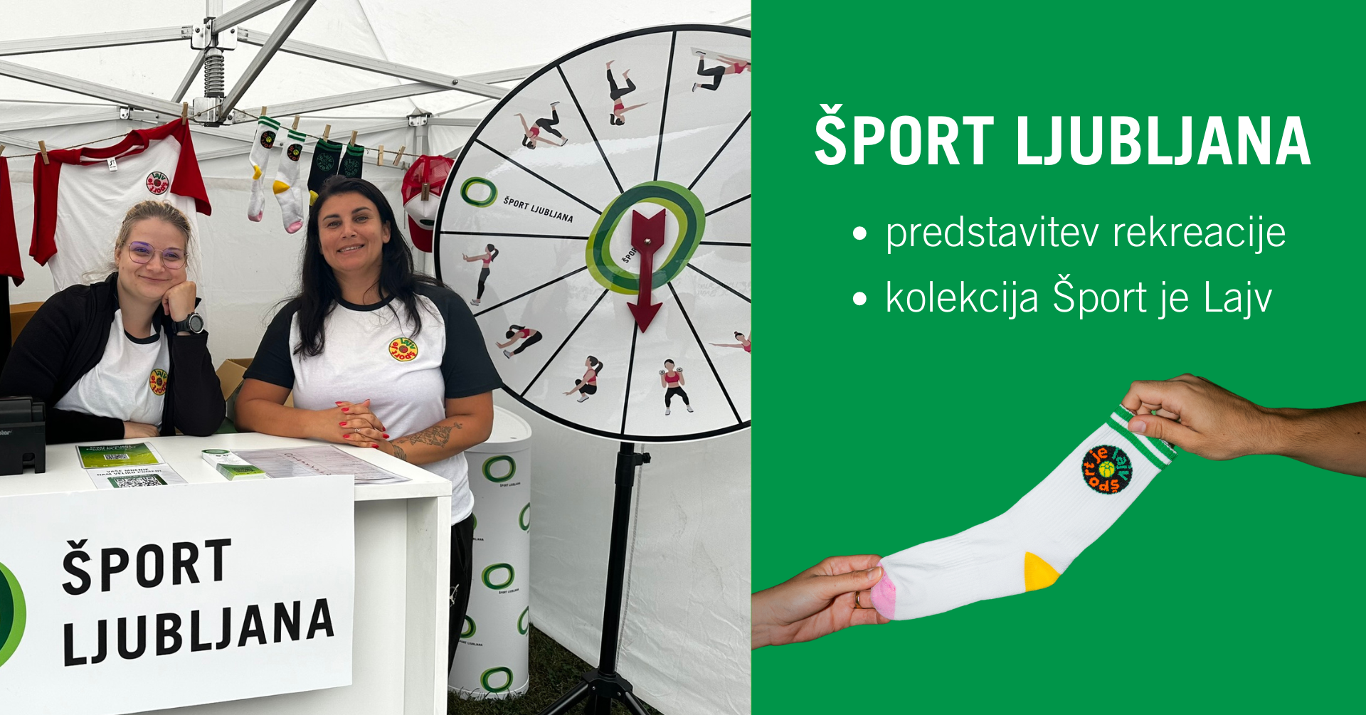 Vabimo vas, da na sejmu Tečem poiščete stojnico Šport Ljubljana in si zagotovite svoj atraktiven kos kolekcije Šport je lajv! Na voljo so majice, nogavice in kape po posebni sejemski ceni. Na stojnici Šport Ljubljana preverite tudi našo ponudbo rekreacije in se pozanimajte, kje lahko obiščete dejavnost ali sprostitev po svojem okusu.