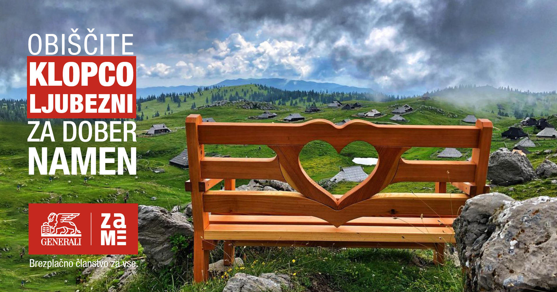 Nudijo vam ideje za romantični ali družinski izlet neodkritih koščkov Slovenije z najlepšimi razgledi. S članstvom v brezplačnem Programu prednosti Generali ZAME si lahko zagotovite svoj interaktivni album Klopc ljubezni, obiščite vsako posebej, skenirajte njeno QR-kodo in jo shranite v svoj album, ki vam lahko prinese tudi nagrade. Z vsakim obiskom klopce pa ste tudi dobrodelni, saj bo Generali zavarovalnica za vsak vaš obisk donirala 2 EUR Zvezi prijateljev mladine Ljubljana Moste-Polje, v okviru gibanja The Human Safety Net (THSN).