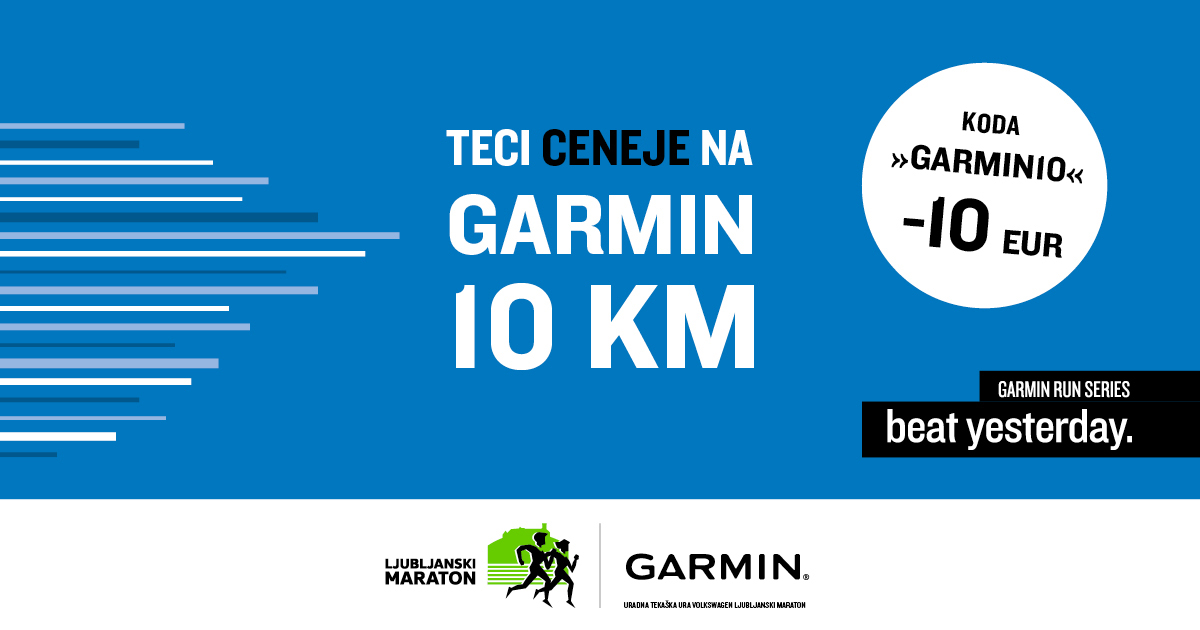 V sodelovanju z Garmin Slovenija, dolgoletnim partnerjem in imenskim sponzorjem 10 km preizkušnje, vam vse do 30. septembra omogočamo 10 EUR popusta pri prijavnini za Garmin 10 km tek.