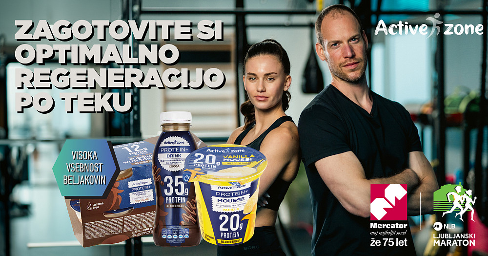 NLB Ljubljanski maraton je tik pred vrati, za dobro tekaško formo pa niso pomembne samo hitre noge. Pomembni sta tudi moč in hitra regeneracija. Pridružite se 30-dnevnemu Active Zone izzivu na msoseska.tv in poskrbite za optimalno telesno pripravljenost z izdelki Active Zone. Izberite izdelke z visoko vsebnostjo prehranskih vlaknin, predvsem pa izjemno pomembnih beljakovin: skyr, proteinske napitke in pudinge, 100 % arašidovo maslo, pa tudi nove proteinske pudinge s smetano in mousse brez laktoze ter kruh.